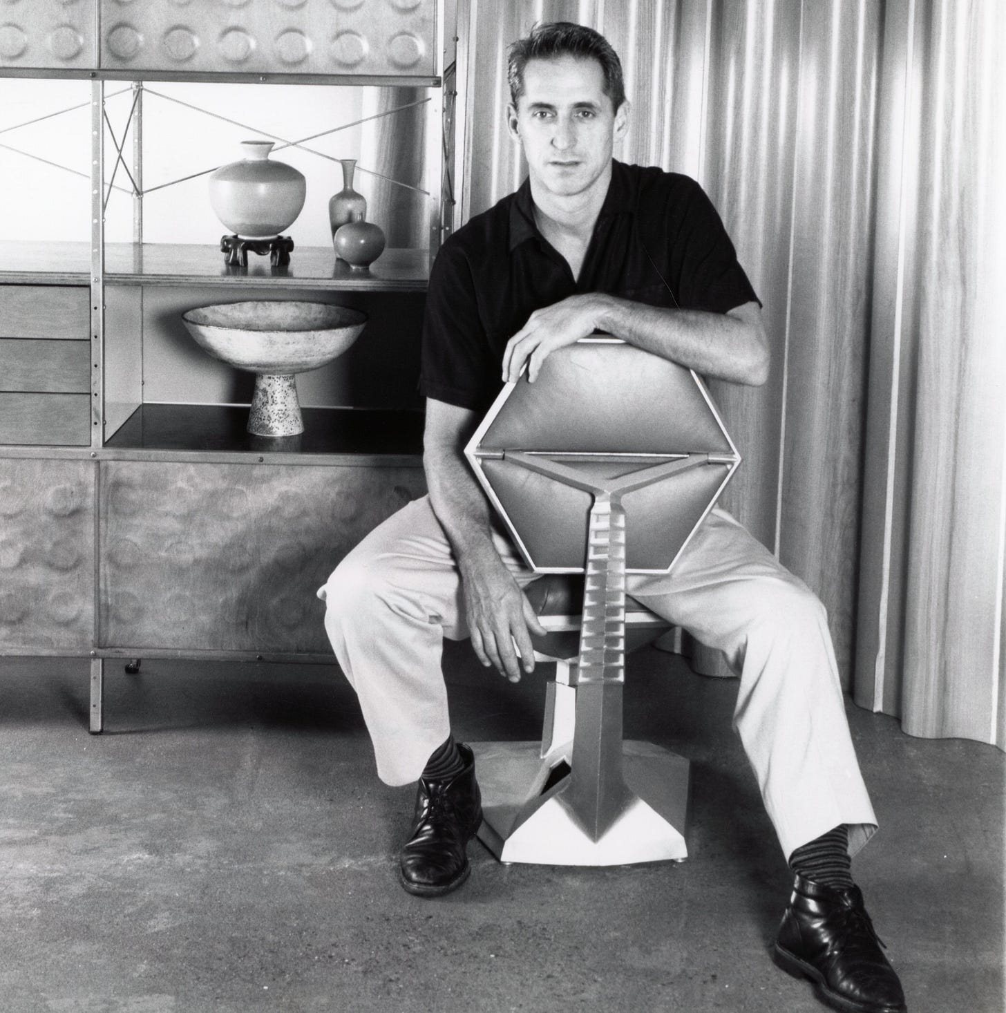 They persisted. “We talked to people who’d been around in the ‘50s and ‘60s and through them, we were exposed to really good things. We met a lot of the people who had been the designers and makers, visited their homes and studios. We got to look at and handle a tremendous amount over a long period of time.” Over the years, he rediscovered forgotten designers and makers, remade their careers. And he befriended some of the luminaries of that era, including—among many others—Ray Eames.